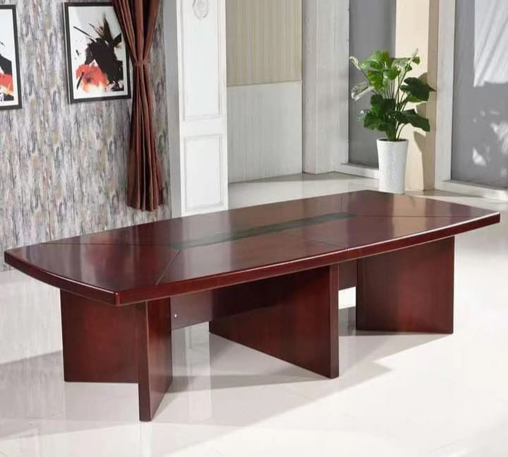 Crafted from premium-quality mahogany wood, this boardroom table highlights the natural strength and beauty of the material. The rich mahogany tones and distinctive wood grain bring warmth and sophistication to the room. Its polished finish enhances the table’s visual appeal while providing a smooth and durable work surface. Teams can easily place laptops, documents, and presentation materials across the spacious tabletop.
