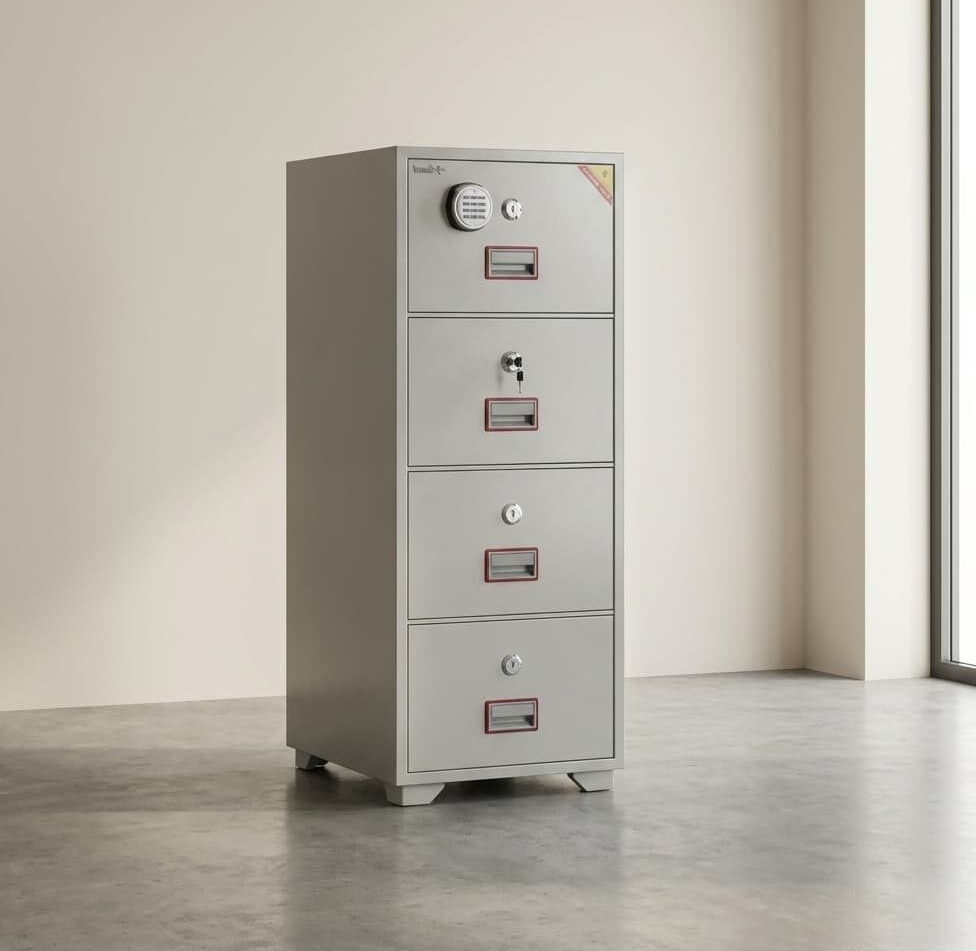 Keep your documents, files, and valuables safe with the 4 Drawer Steel Digital Lock Office Cabinet, a sleek and modern storage solution for offices, home workspaces, and commercial environments. Constructed from high-quality steel, this cabinet offers durability, stability, and fire-resistant protection for your important documents. Each drawer is equipped with an advanced digital lock system, allowing secure access while eliminating the need for traditional keys. Its compact design maximizes storage efficiency, keeping your workspace organized without occupying excessive floor space. Ideal for offices, reception areas, and professional settings, this cabinet combines security, functionality, and contemporary style.
