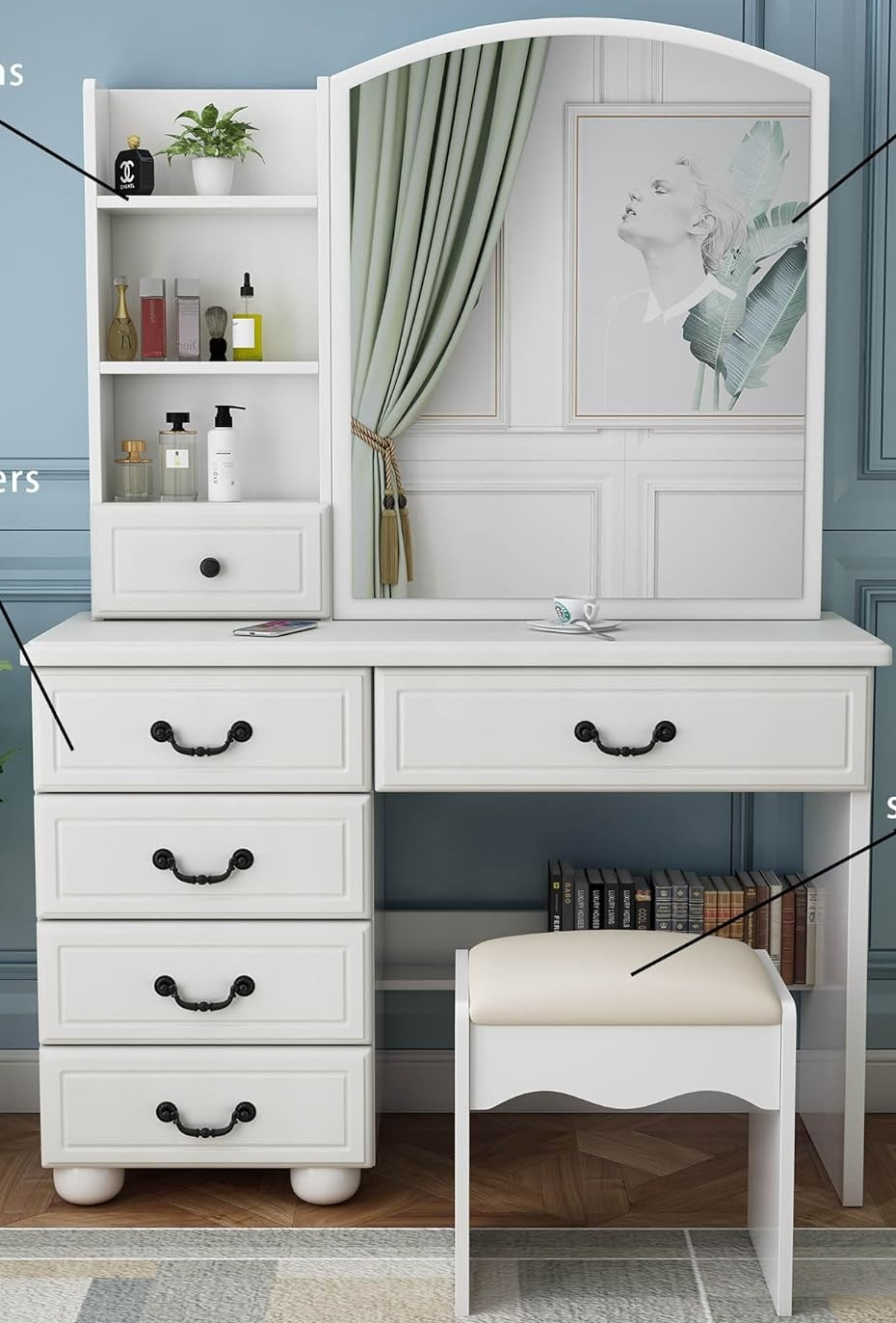Enhance your bedroom with this Bedroom Vanity Dressing Table and enjoy a clutter-free, elegant space designed for comfort, beauty, and functionality. Ideal for those seeking a durable, stylish, and space-efficient vanity table that combines timeless design with everyday practicality.