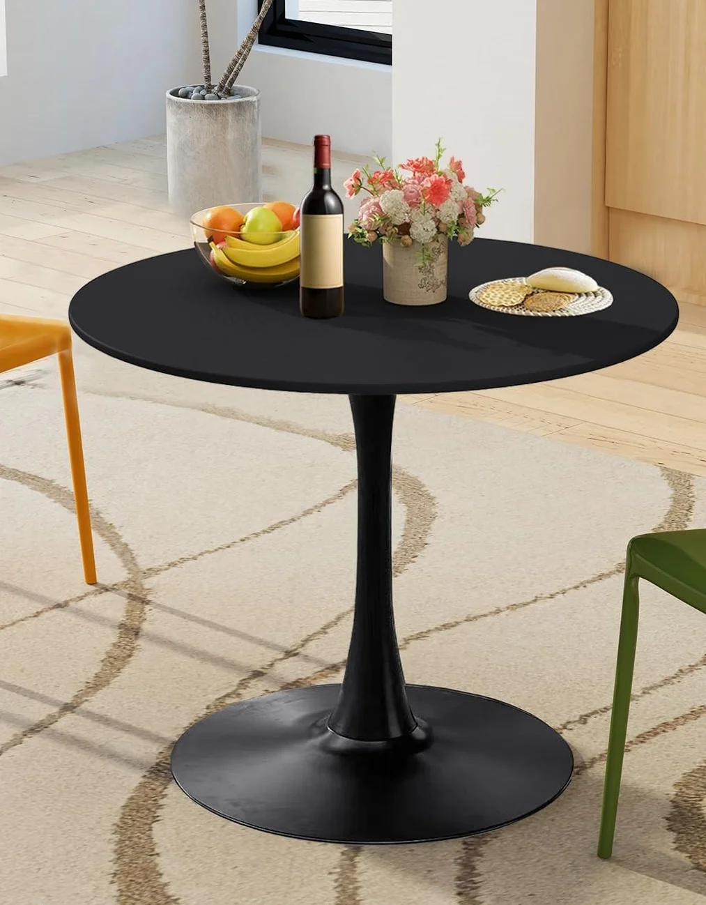 Whether used for a cozy breakfast, family dinner, or casual office meeting, this Black Round Eames Dining Table combines style and practicality. Its sleek black finish allows for easy pairing with various chair styles, including modern plastic, upholstered, or wooden seating options, ensuring a versatile setup for any interior.