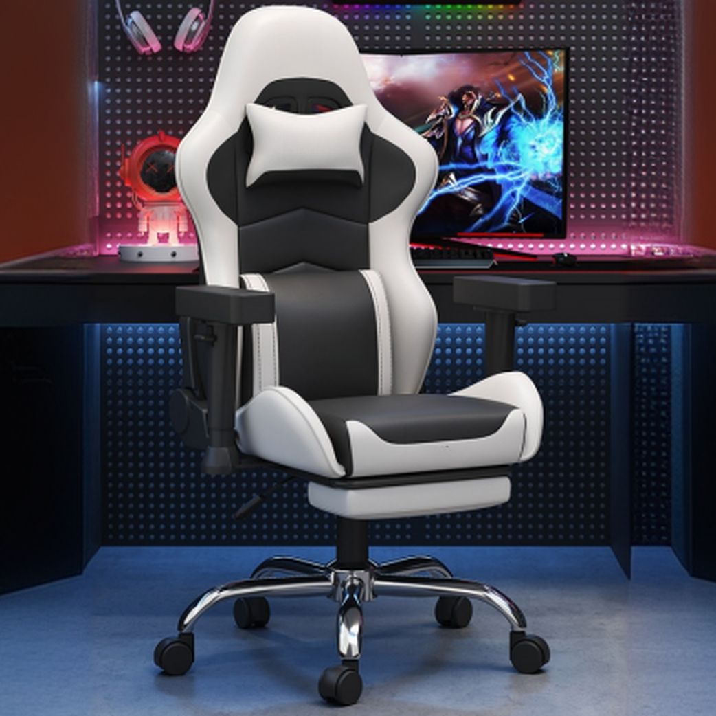 The chair features a bold red-and-black color palette that instantly energizes your gaming room or workspace. Crafted with a race-car-inspired design, it offers full-body support with a contoured high backrest, wide seat base, and adjustable armrests. The included lumbar support pillow and headrest cushion help maintain proper posture, reducing fatigue during long sessions.