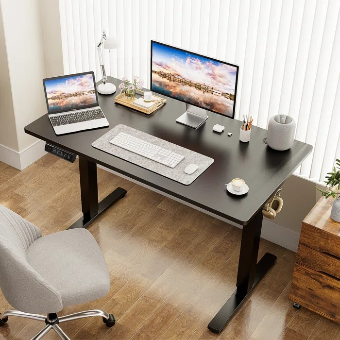 Constructed with high-quality engineered wood and a sturdy steel frame, this desk offers long-lasting durability and stability. The electric lift system allows you to adjust the desk height effortlessly at the touch of a button, promoting better posture and reducing fatigue during long work hours. Whether you prefer sitting or standing, this desk adapts seamlessly to your preferred working style, enhancing both comfort and efficiency.