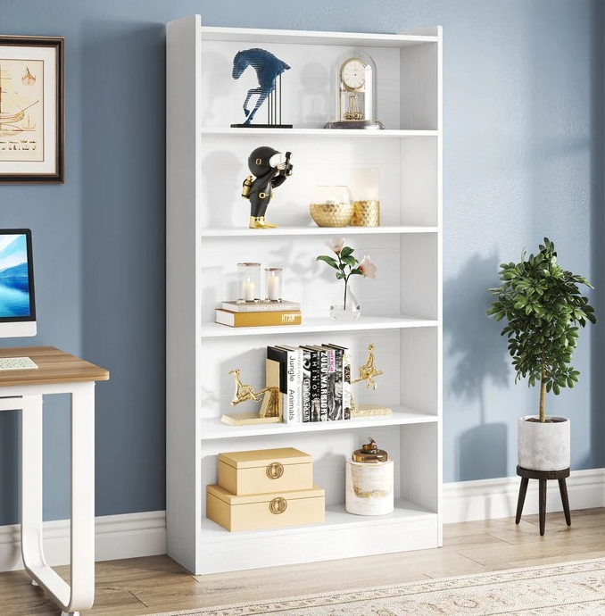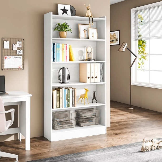 With five spacious tiers, this bookshelf provides ample storage for books, files, photo frames, potted plants, and other accessories. Each shelf holds significant weight while staying stable, keeping your items safe and neatly displayed. The open design allows you to access your belongings easily and creates a visually appealing arrangement that enhances the aesthetics of your home office or study area.