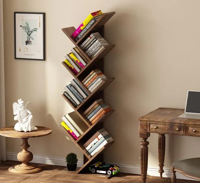 Crafted from high-quality, solid wood, this bookshelf set ensures long-lasting durability and stability. Each tier is carefully constructed to hold a variety of items, from books and magazines to photo frames, plants, and decorative pieces. The 8-tier design maximizes vertical storage while maintaining a compact footprint, making it ideal for small spaces, apartments, or offices where efficient storage is essential. The tree-shaped layout creates an organized, visually appealing arrangement that encourages creativity in decorating and displaying items.